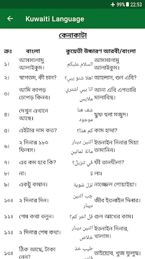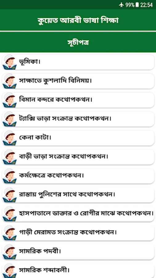 The application has been created to acquire the skills of traditional Arabic language in Kuwait. If this lesson is practiced well, then anyone coming from Bangladesh will be able to easily carry out their initial tasks and subsequent work-related conversations at the workplace.