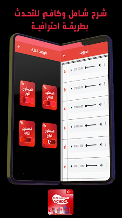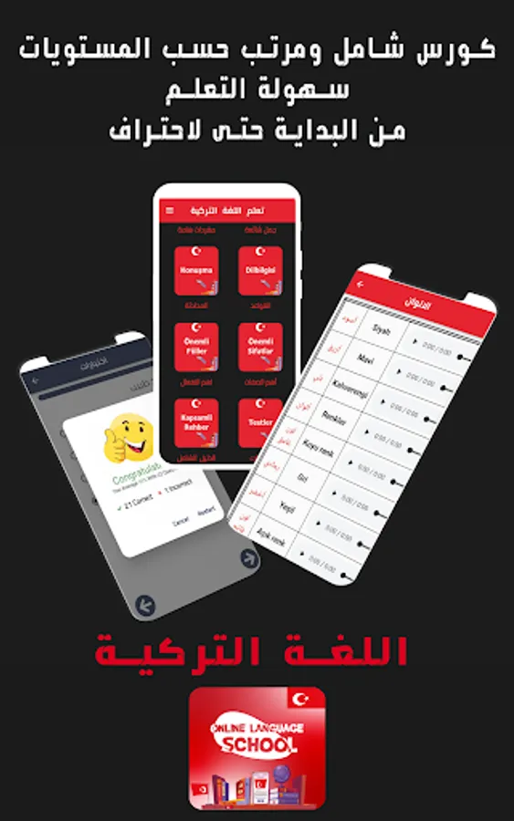 This application is an integrated course to learn the Turkish language for beginners from scratch to professionalism, as you will find in it more information from the school because it is explained in a simplified way and prepared by specialists in this field