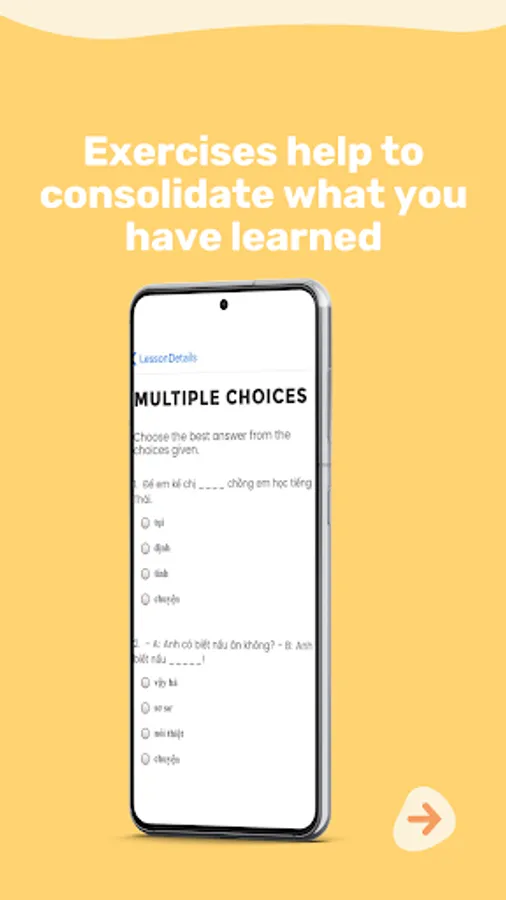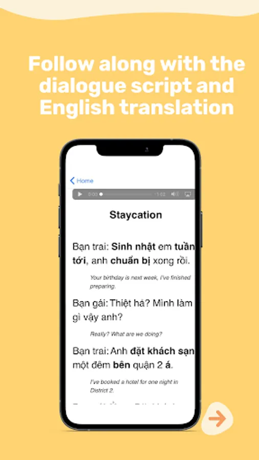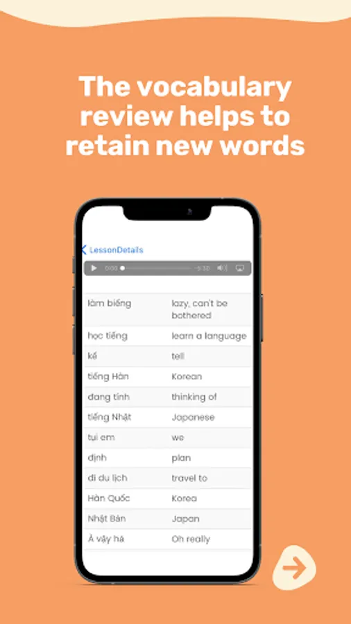 Each lesson includes a discussion of the dialogue, wherein our two hosts – one speaking Vietnamese and one English – analyze each line of the conversation, offering explanations and elaborations on key words and structures. There is also a vocabulary review file, which allows you to simultaneously test yourself on the new words while also consolidating your learning. Then there is an exercise page, for further practice and consolidation of the words and structures.