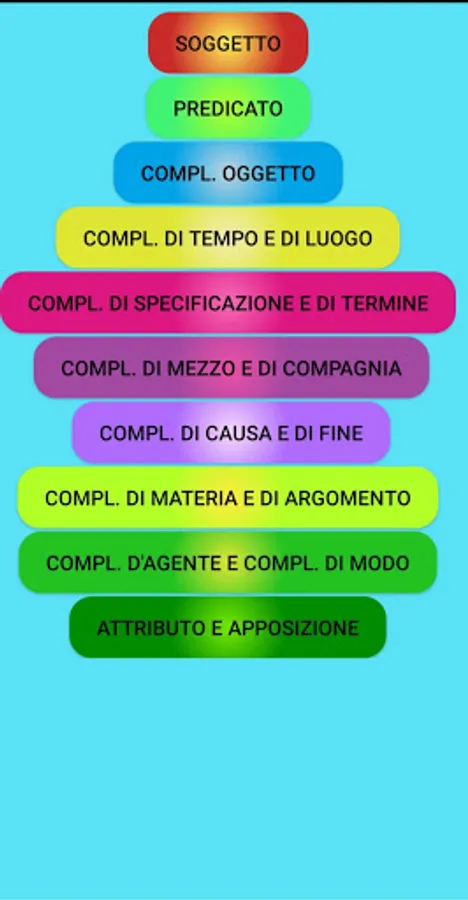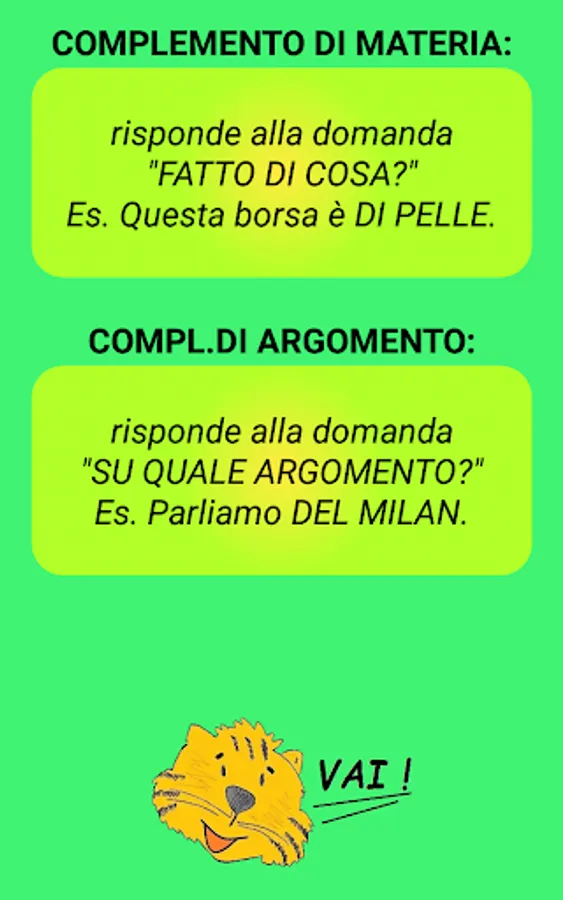 In the first you can choose what to focus on (subject, predicates, attributes, appositions and all the complements), read the explanation that comes before the exercise and then launch into the game.