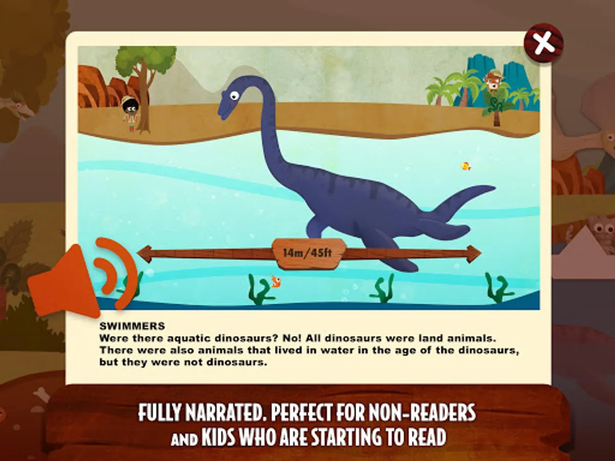 "What were dinosaurs like?" is the perfect app for inquisitive children. Through easy to understand narrated texts, educational games and incredible illustrations, it teaches children basic information about dinosaurs, including what they looked like, how they lived, how they reproduced, and what they ate...
