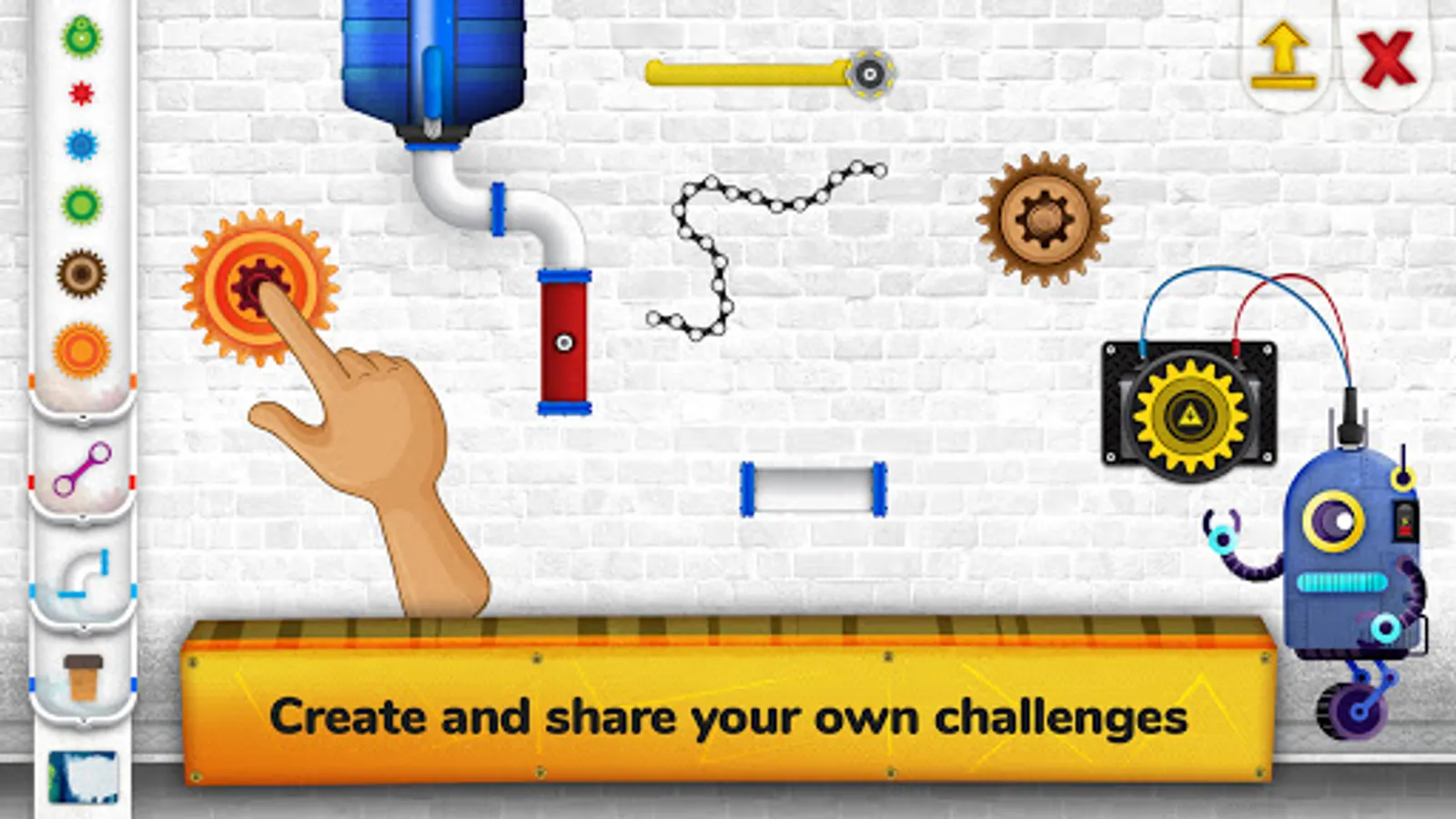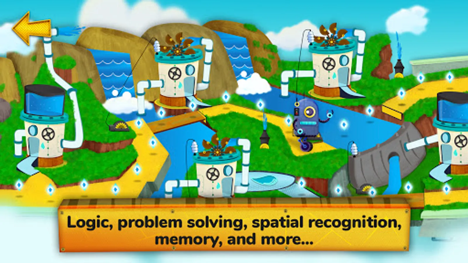 Play with gears, water, and steam to solve all the puzzles and reach the end of the course. Manipulate pipes, chains, cylinders, levers, and all other types of mechanisms and devices to help you solve fun and educational challenges.