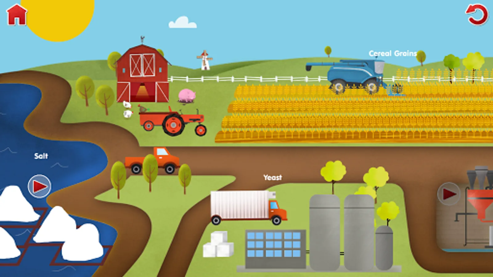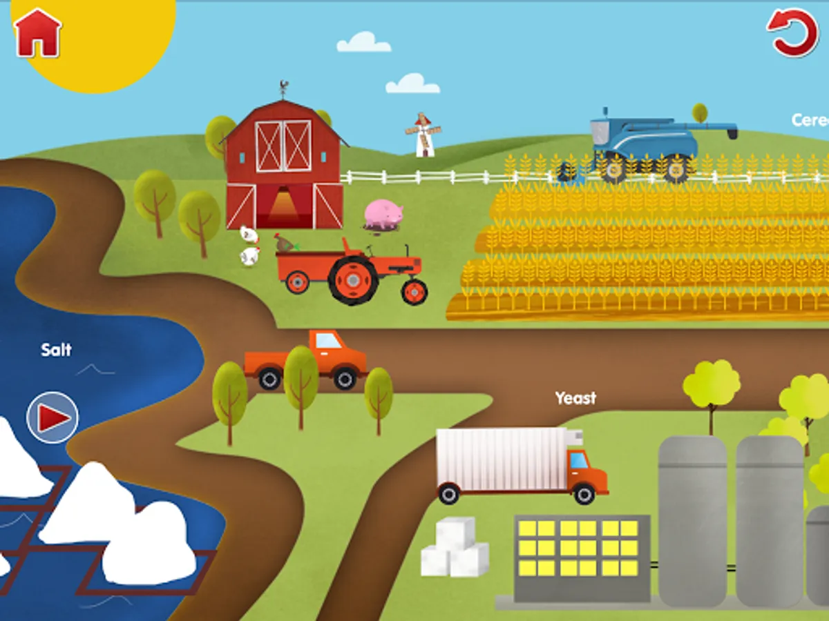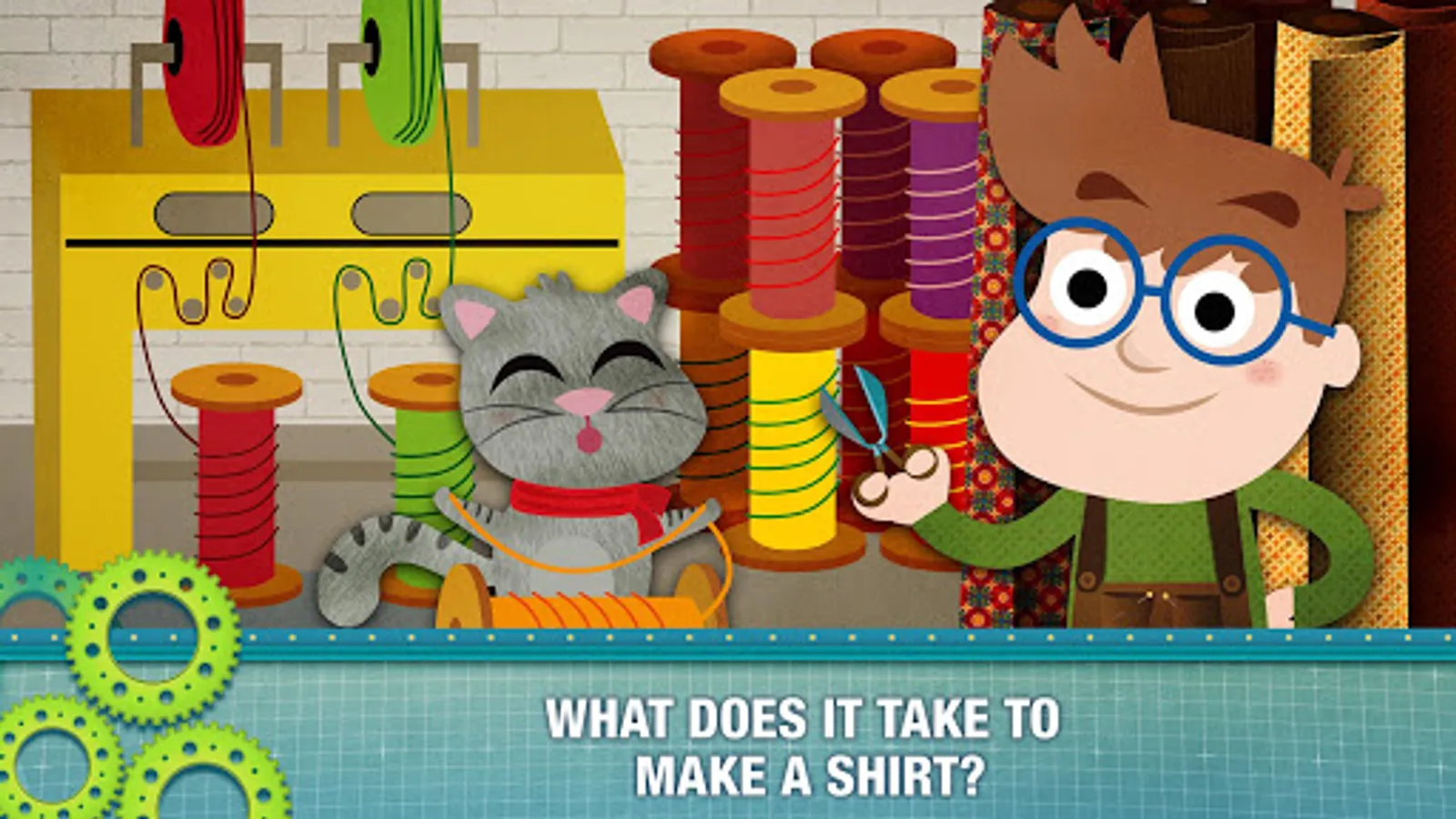 • Dozens of educational games: clean the impurities from the cotton to make thread, screw the wheels on a skateboard, mix the ingredients to make bread, grind the grains to make flour, lift the bags into the truck, pass the rollers to print the book…