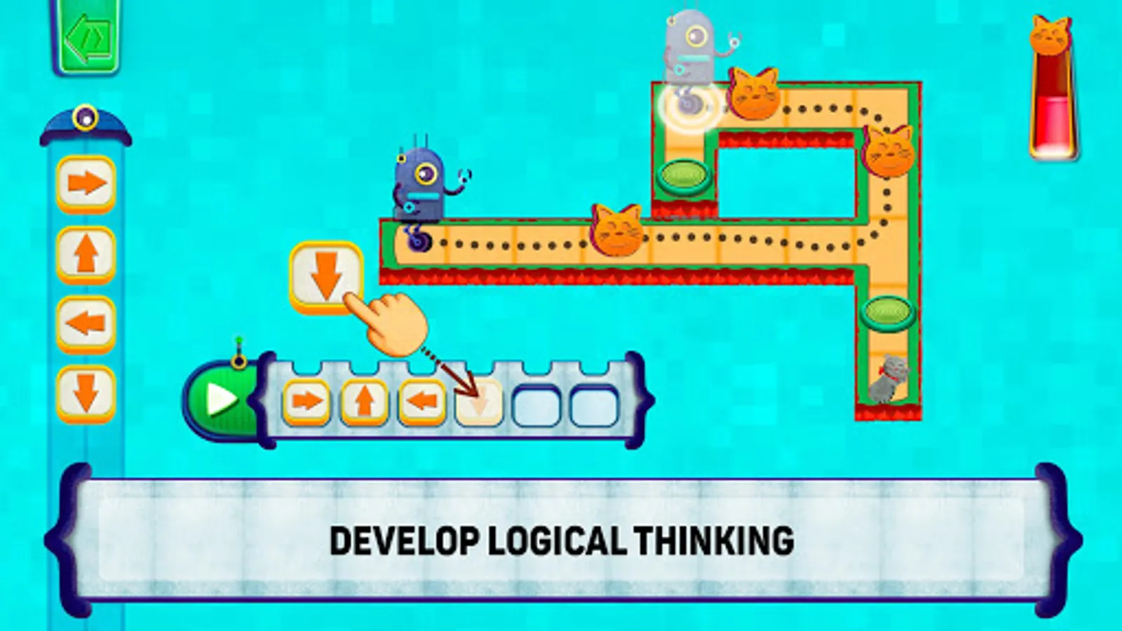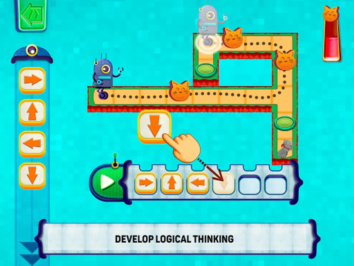 Play and learn, as you unlock levels, you'll also unlock new elements to help develop your logical thinking. Have fun with little bits of humor on the side and meet new friends: the cat and the robot.