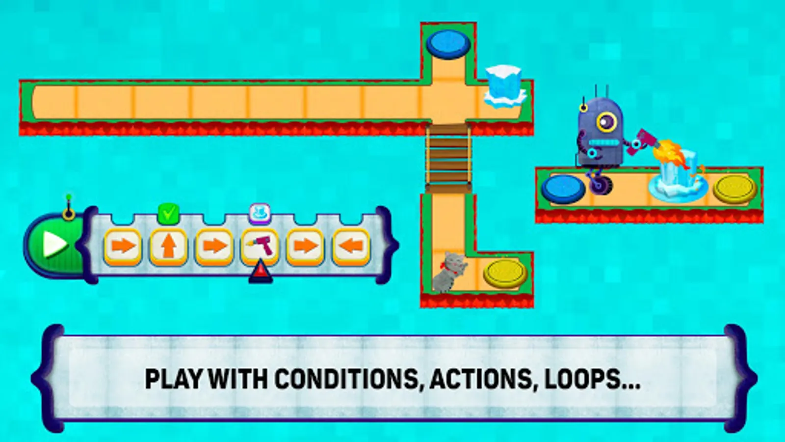“Code the Robot. Save the Cat” is a fun and educational game used to learn the basics of programming and logic. Explore actions, loops, functions and conditions.
