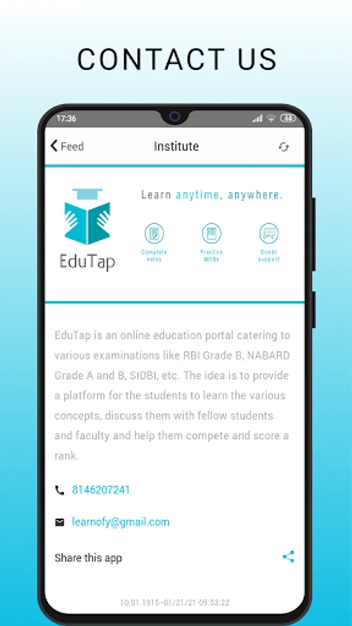 EduTap is an online education portal catering to various examinations like RBI Grade B, NABARD Grade A and B, SEBI Grade A, UPSC EPFO and IB ACIO.