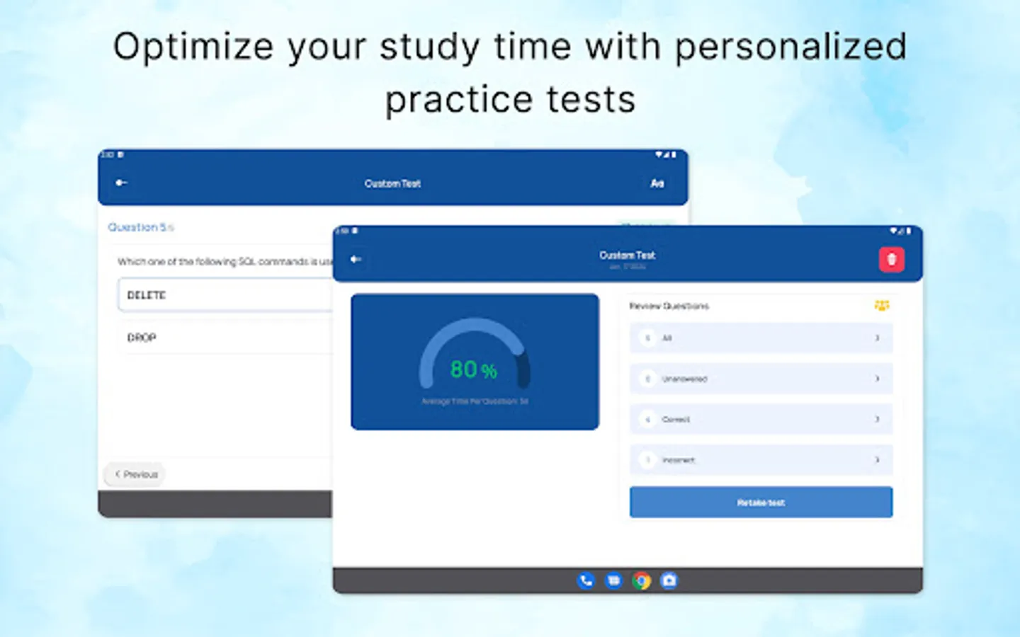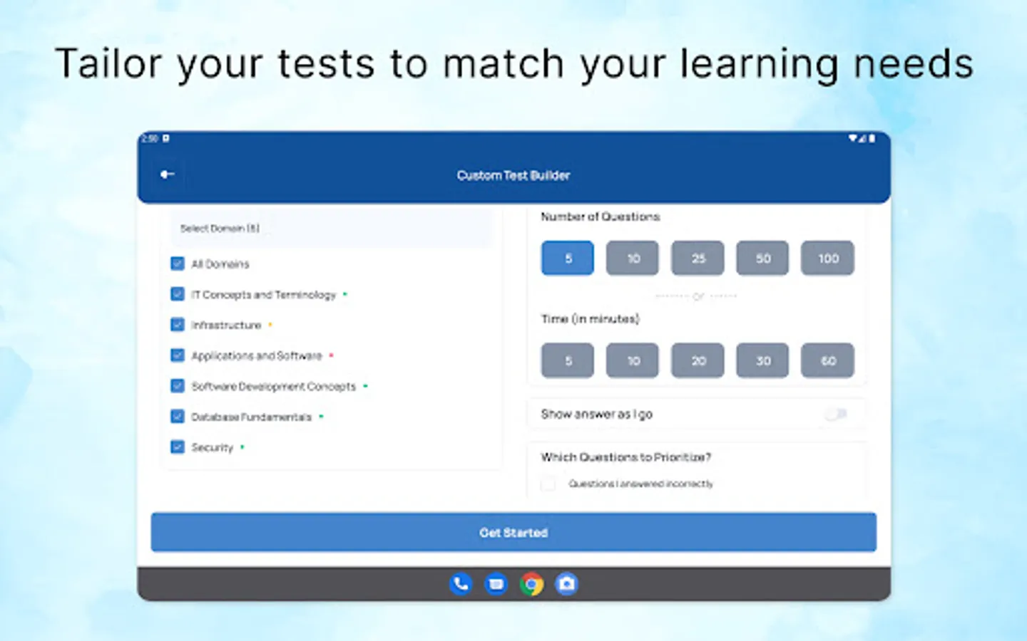 Tailor your study experience with our Custom Test Builder. Select topics of interest or areas for improvement to create personalized practice tests. Our intelligent engine adapts to your needs, continuously challenging you with new questions and those you find tricky.