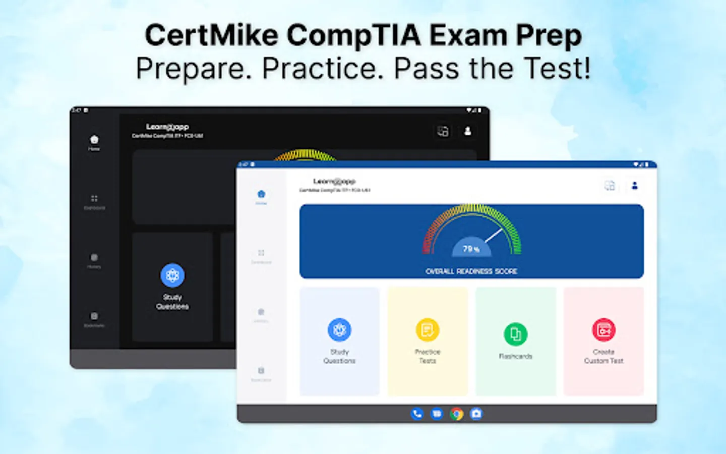 Get ready to transform your exam preparation with CertMike.The app offers an extensive range of tools including over 600 exam-like questions, 1400+ flashcards, a personalized Readiness Score, Custom Test Builder, and a Progress Tracker. It also provides full-length Mock Exams, convenient Bookmarking, cross-device accessibility, and regular content updates. CertMike App is designed for flexibility with a free starter plan and an option for unlimited access through subscription – all to ensure you have everything you need to excel in your CompTIA exams.