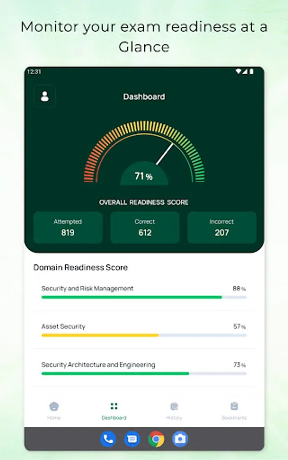 Find out how prepared you are for the real exam with our readiness score feature. Calculated based on your performance in practice tests, it tells you exactly where you stand and which areas you should focus on. The domain readiness scores allow you to pinpoint your weakest areas and work on them, ensuring that you are fully prepared for the real exam.