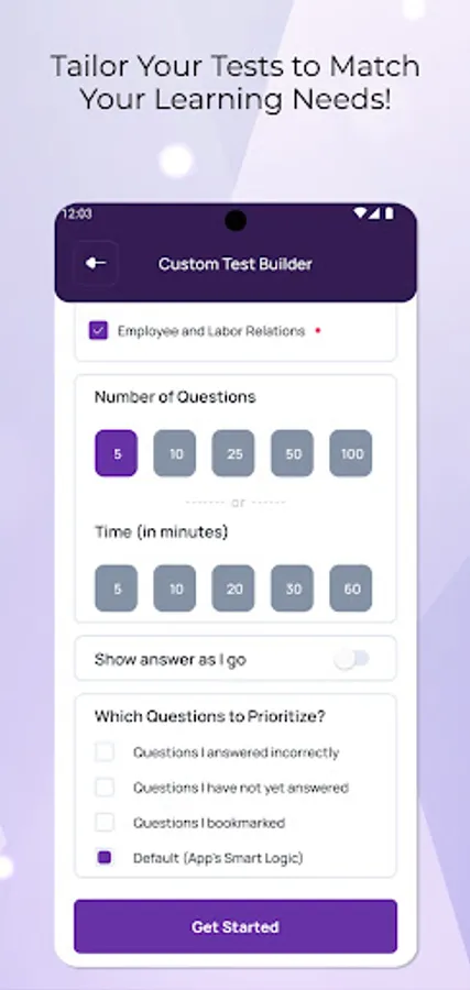 Our custom test builder allows you to tailor your practice sessions. Choose specific topics and questions and create tests to cater to your study needs. This tool curates a mix of new and challenging questions, helping you fortify your weak areas.