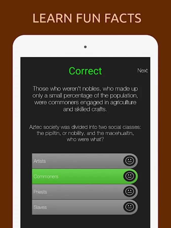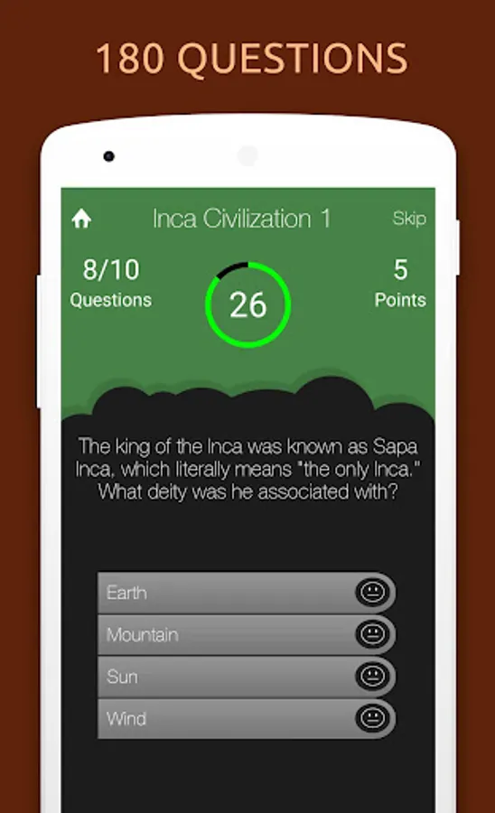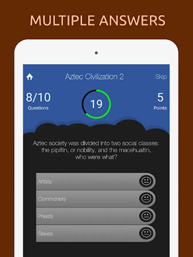 Trivia questions and answers are shuffled randomly every time you play. You can skip a question, if you don't know the answer. Play multiplayer one on one with your friends!
