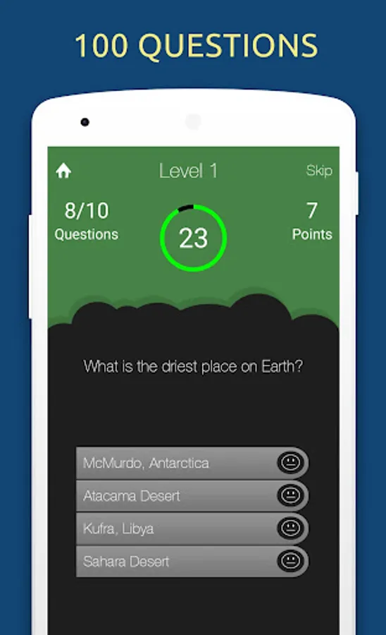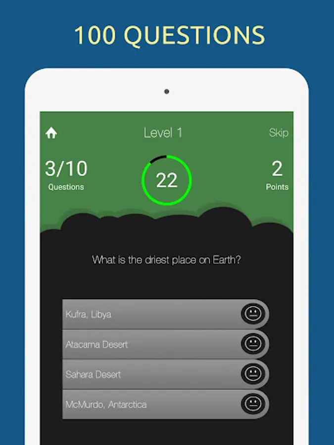 If you want to know geography, this quiz is what you need. Geography Quiz Trivia Game is a collection of 100 trivia questions and facts about geography.