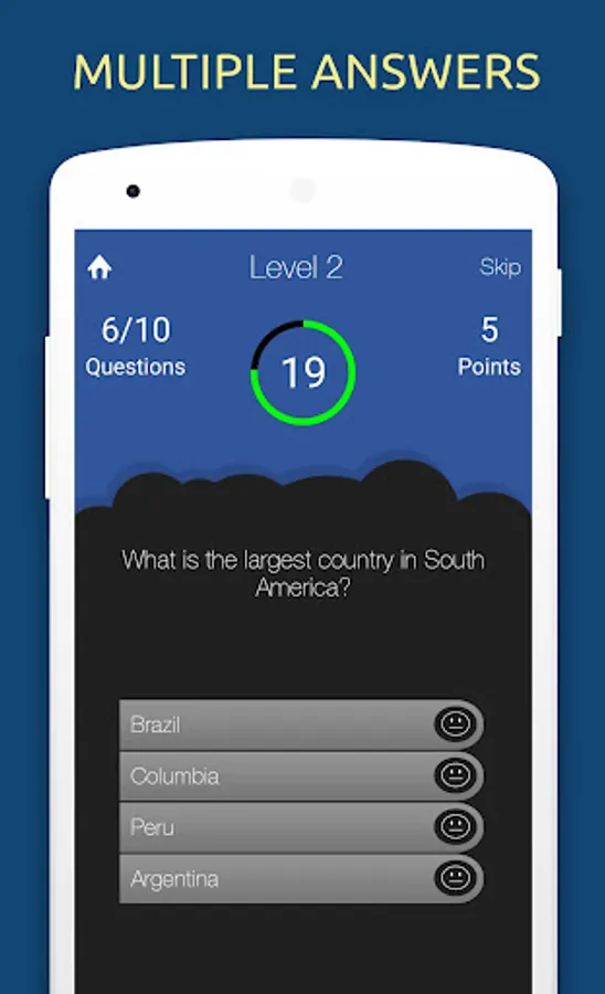 Questions and answers are shuffled randomly every time you play. Play multiplayer one on one with your friends!