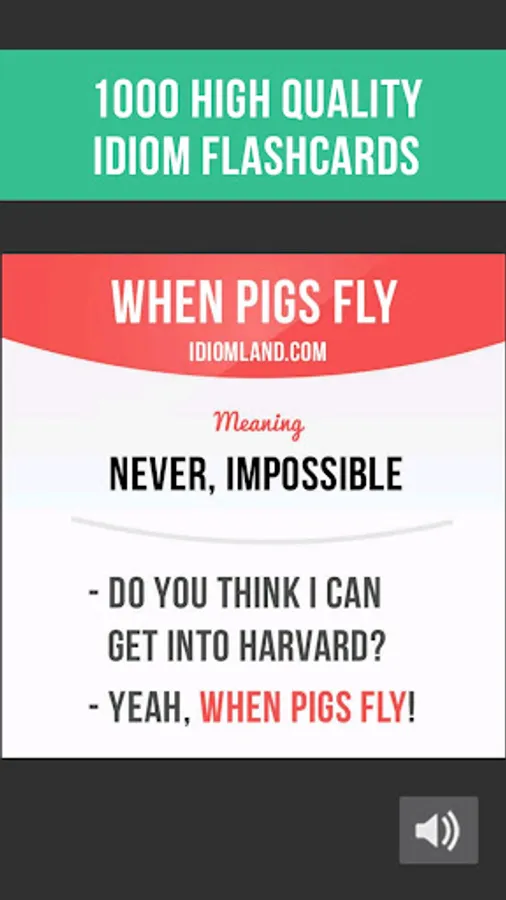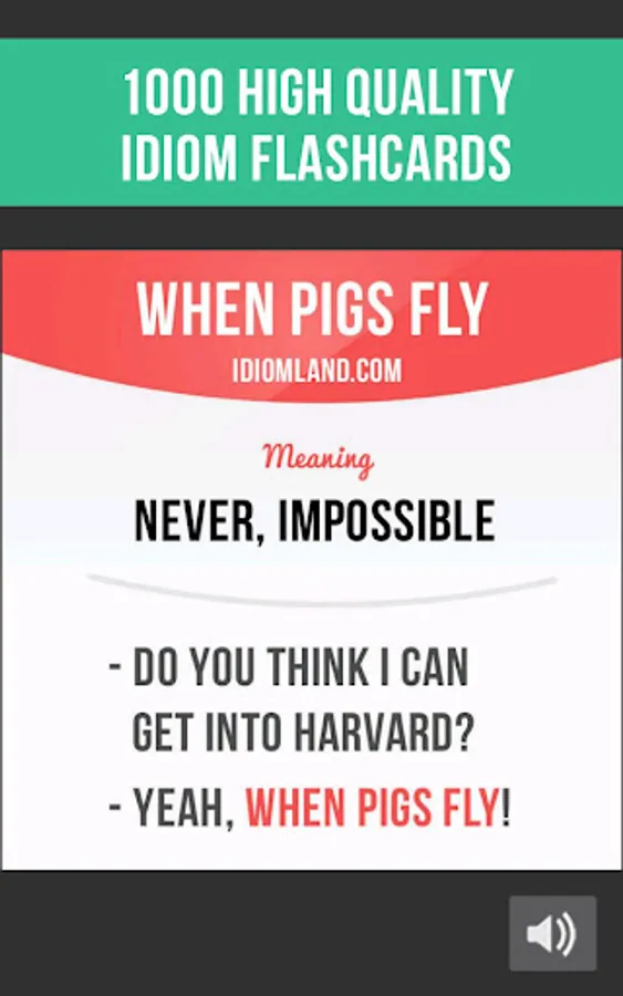 In our app you will find 1000 flashcards containing idiom meanings, example sentences, pictures and correct pronunciation.