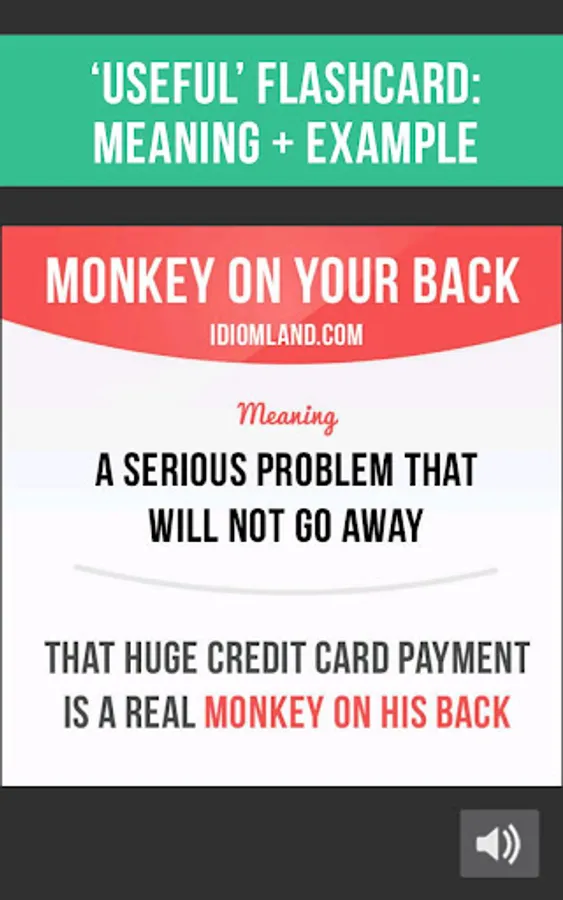 1. 'Useful' flashcard shows you an idiom, its meaning and an example.