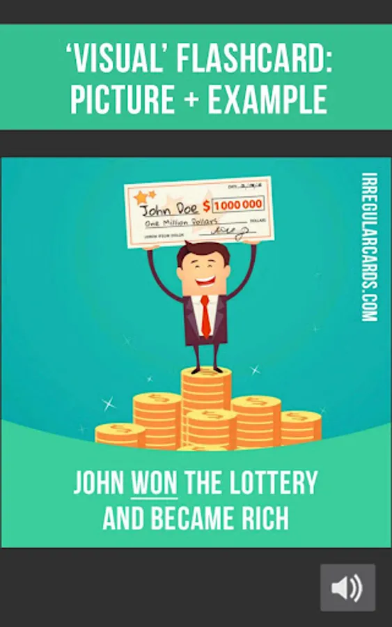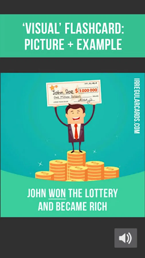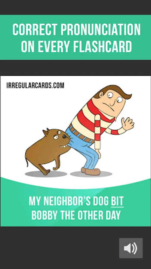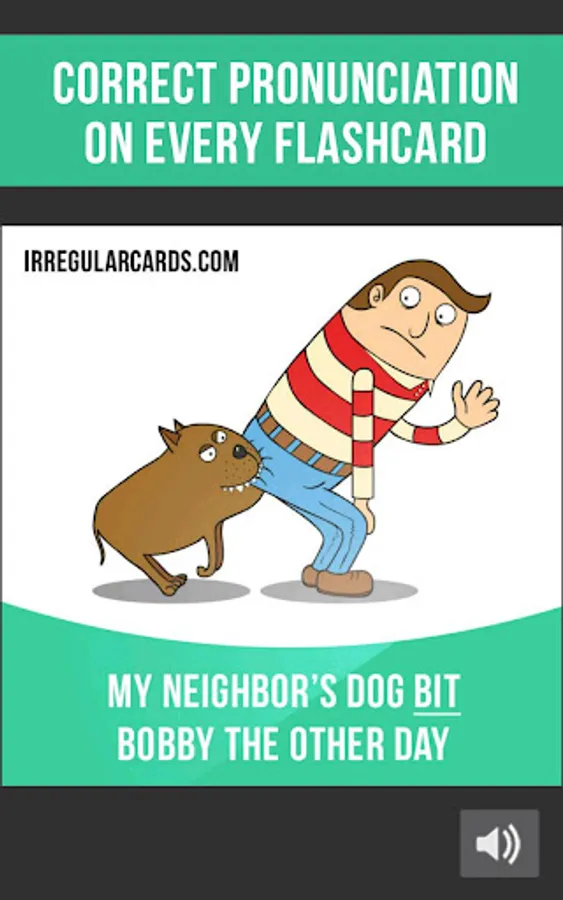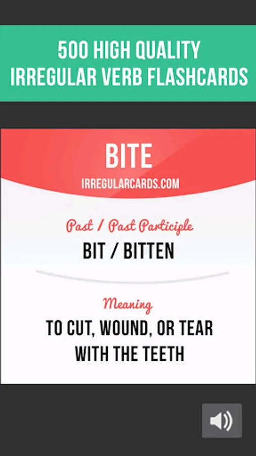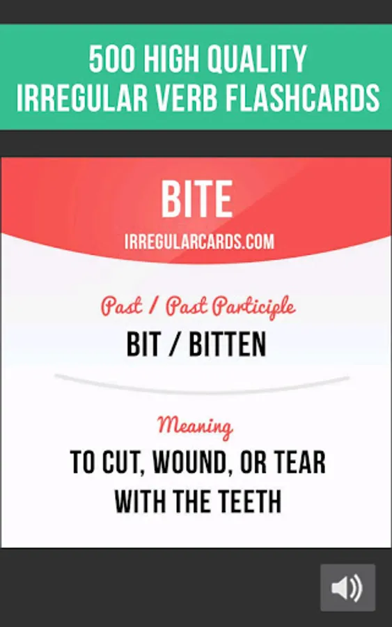 In our app you will find 500 flashcards containing irregular verb forms, meanings, example sentences, pictures and correct pronunciation.