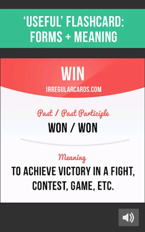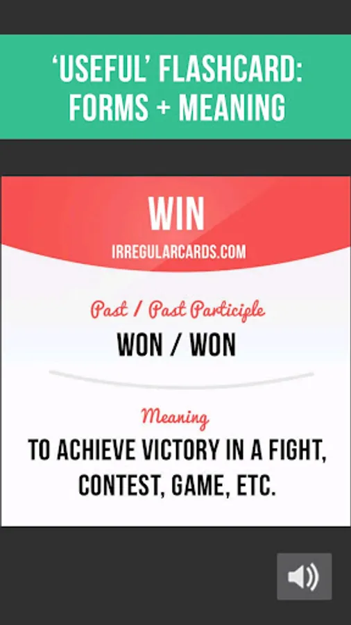 1. 'Useful' flashcard shows you an irregular verb, its forms and meaning.