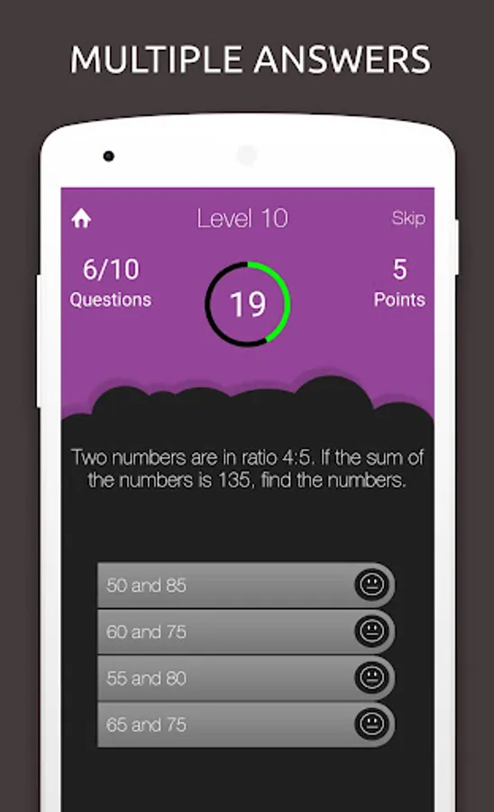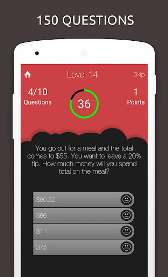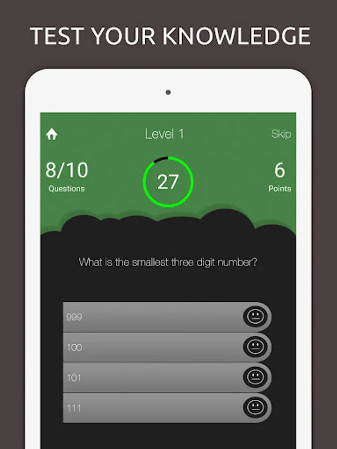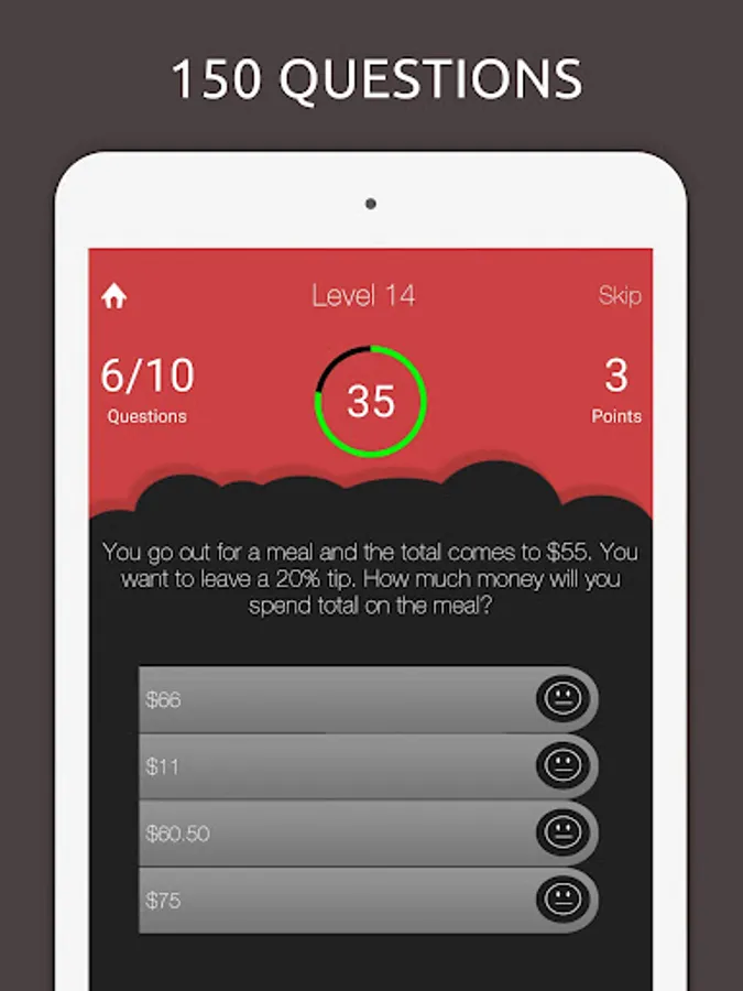 Questions and answers are shuffled randomly every time you play. You can skip a question, if you don't know the answer. Play multiplayer one on one with your friends!