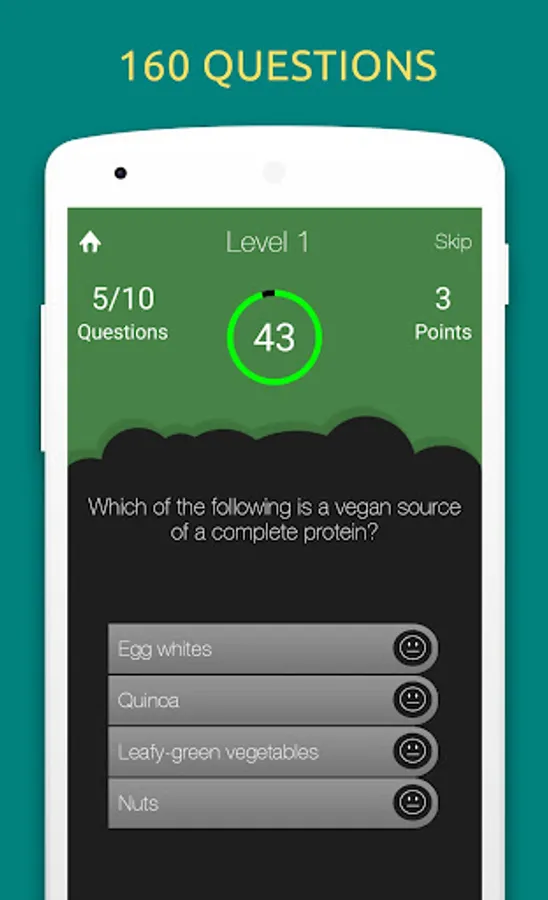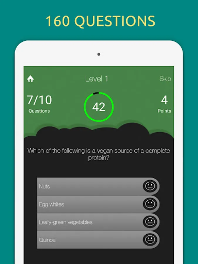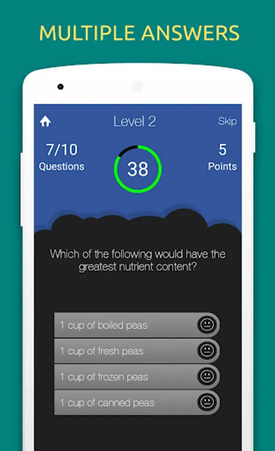 Questions and answers are shuffled randomly every time you play. You can skip a question, if you don't know the answer. Play multiplayer one on one with your friends!