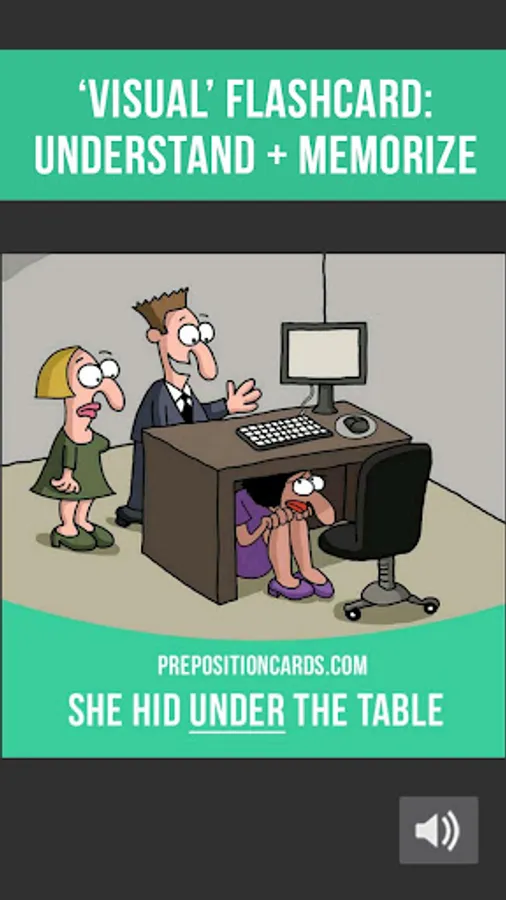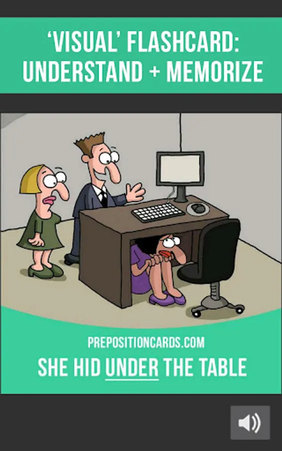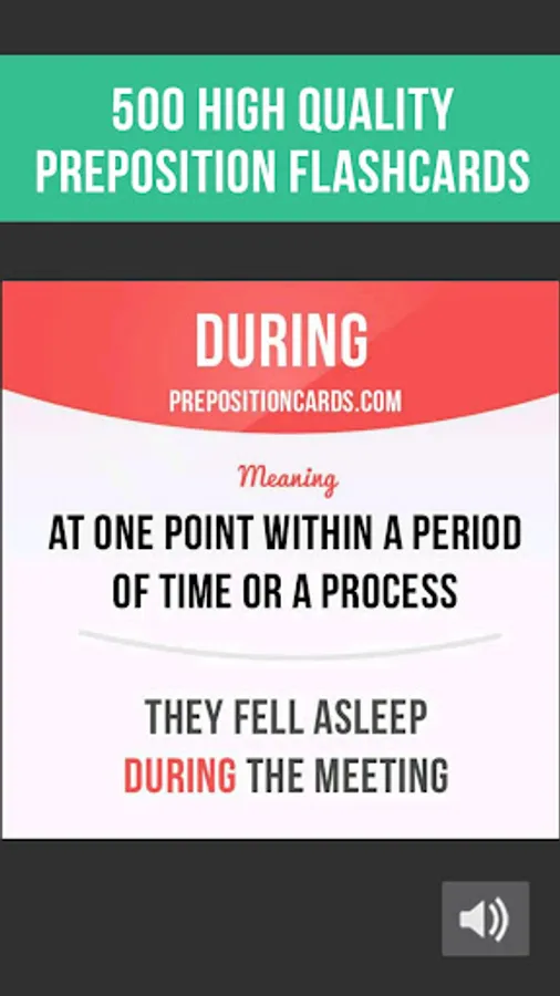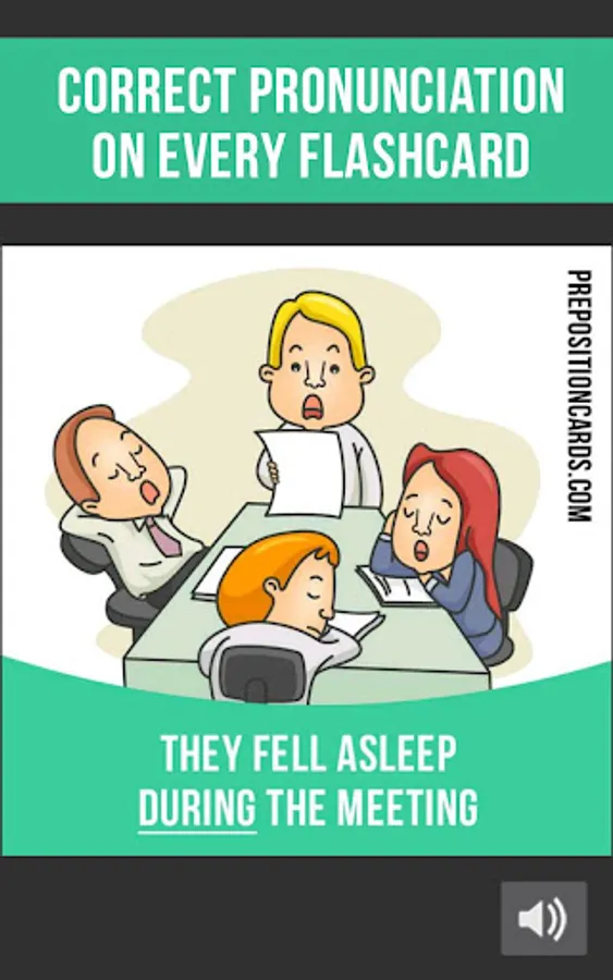 In our app you can find 500 flashcards containing English prepositions, example sentences, pictures and correct pronunciation.