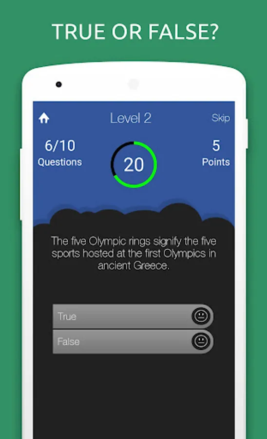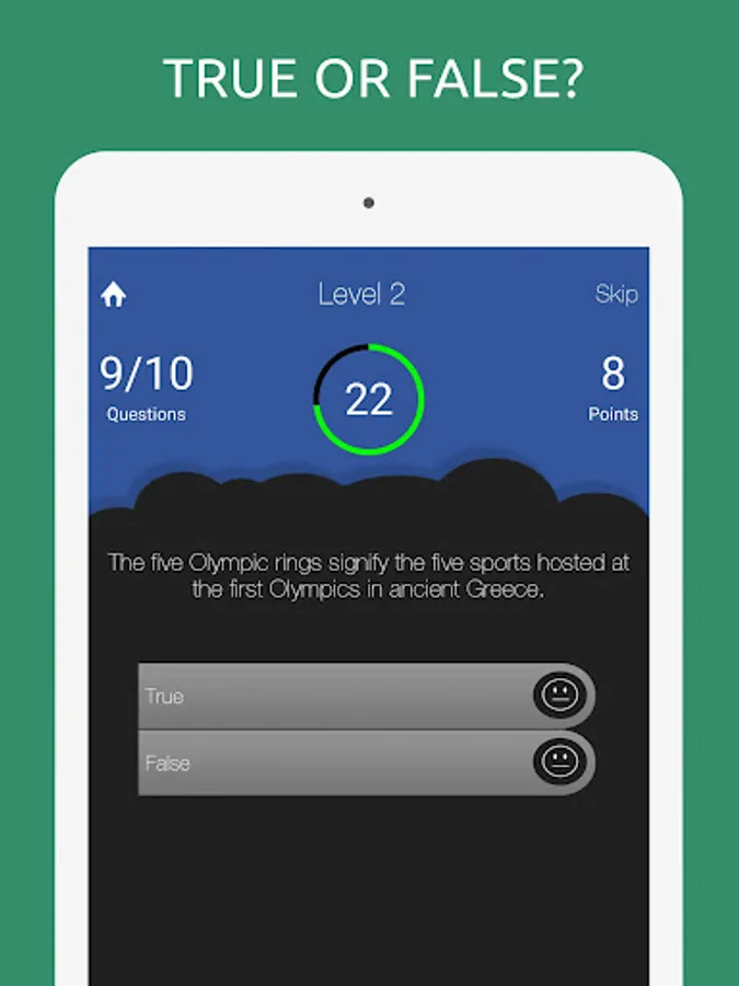 Trivia questions and answers are shuffled randomly every time you play. You can skip a question, if you don't know the answer. Play multiplayer one on one with your friends!