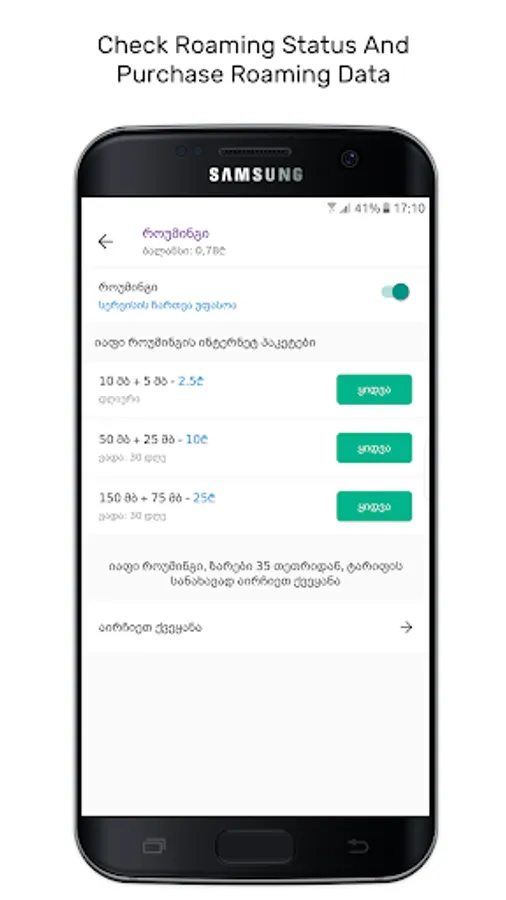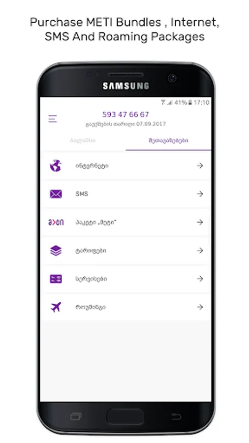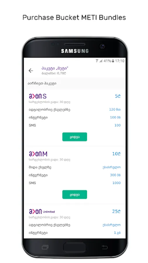 - Purchase internet, voice, SMS and mixed bundles