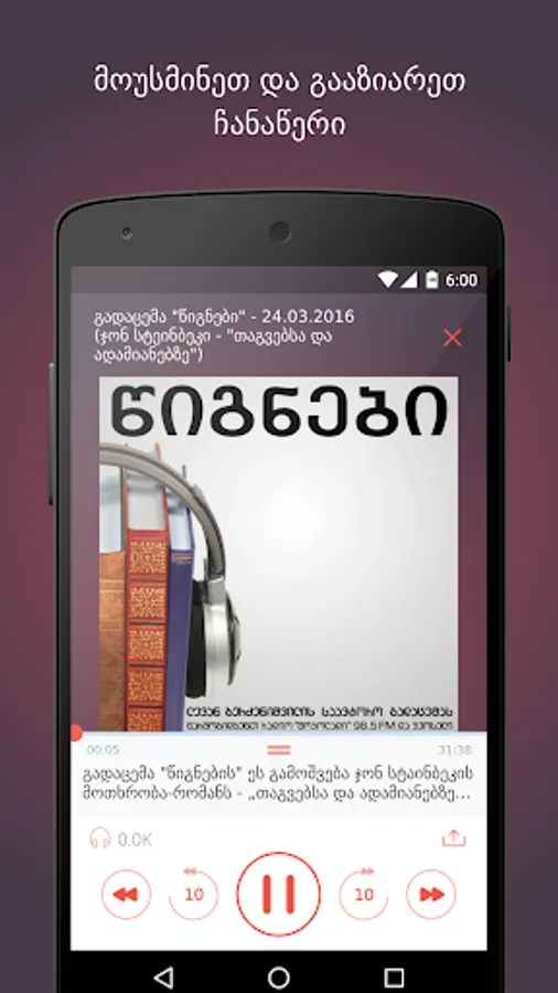 * Record while listening to wrap the record, read the content of the program and if you wish to share with friends or internationally;