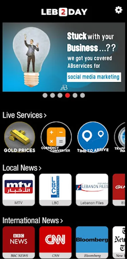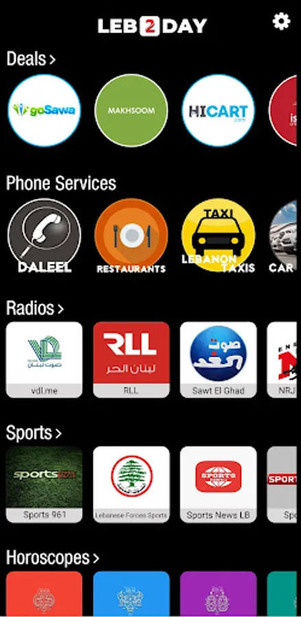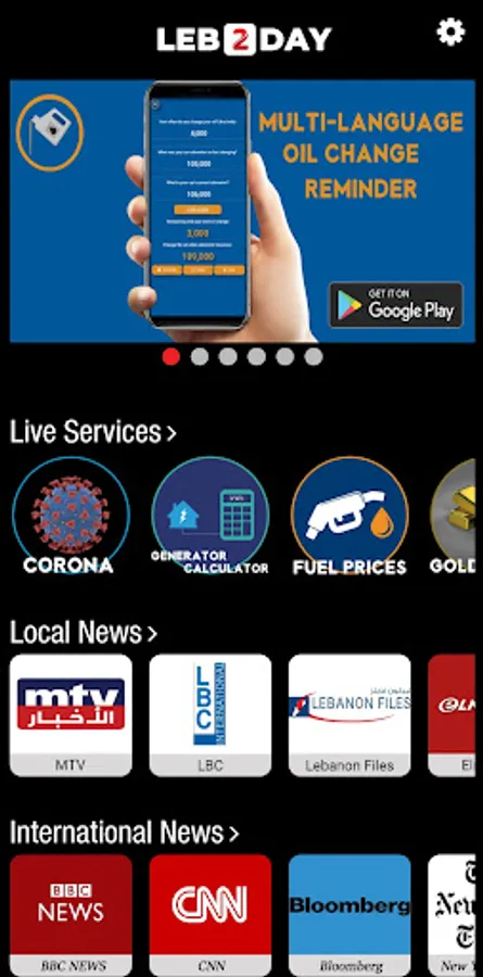 - Live Services (TMO, Fuel, Gold, Weather, Currency Converter,Cryptocurrencies,Beirut Airport,Yellow Pages, Bar-code Scanner, Package tracker, Mechanic fees, speed tickets, Internet Speed Test, oil change).