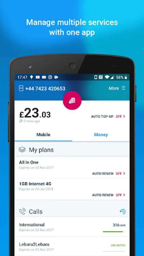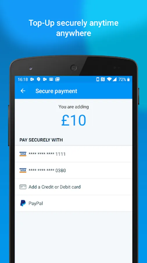 • Top up using a credit or debit card or PayPal.