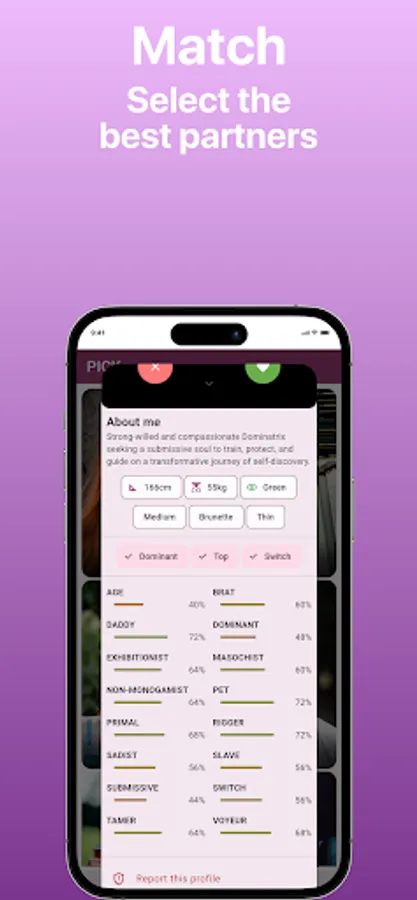 Match with Compatible Partners: Our advanced matching algorithm considers your preferences, interests, and kinks to connect you with potential partners who are highly compatible. Experience the thrill of finding someone who understands your desires and is eager to embark on an exhilarating journey with you.