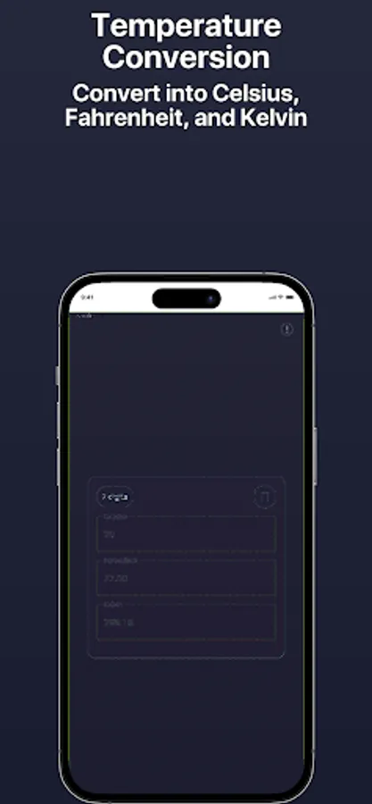 - Intuitive Conversion: Seamlessly convert temperatures between Celsius (°C), Fahrenheit (°F), and Kelvin (K) with just a few taps. No more mental calculations or confusion!