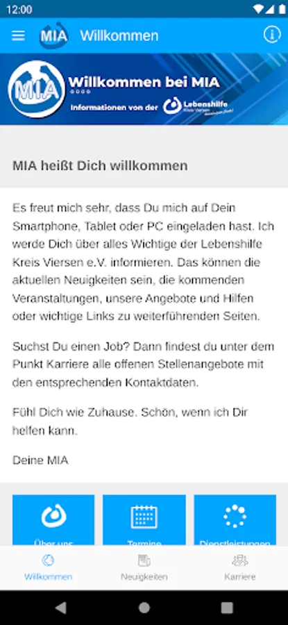 MIA is the communication app of the Lebenshilfe Kreis Viersen e.V.