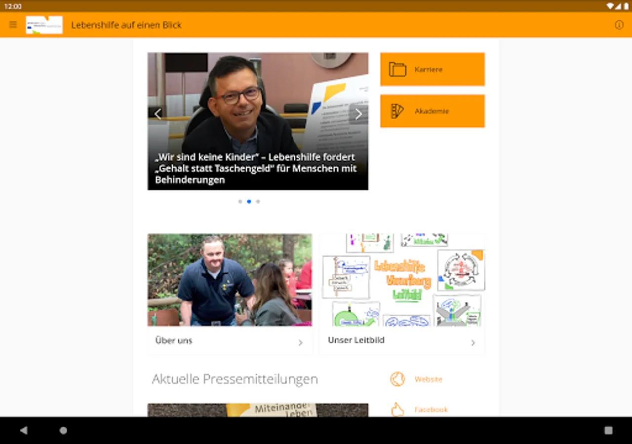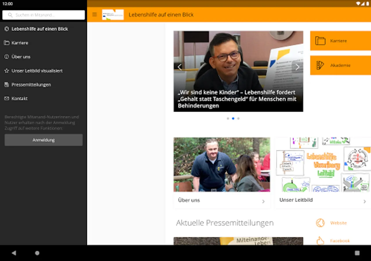 The "Mitanand" app gives an insight into Lebenshilfe Vorarlberg and what is important to us in our work for and with people with disabilities. It provides up-to-date information on interesting projects, offers and events relating to Lebenshilfe Vorarlberg. Find out about job offers and career entry opportunities as well as civil service and internship positions. You can use the app to apply for advertised positions or to apply speculatively.