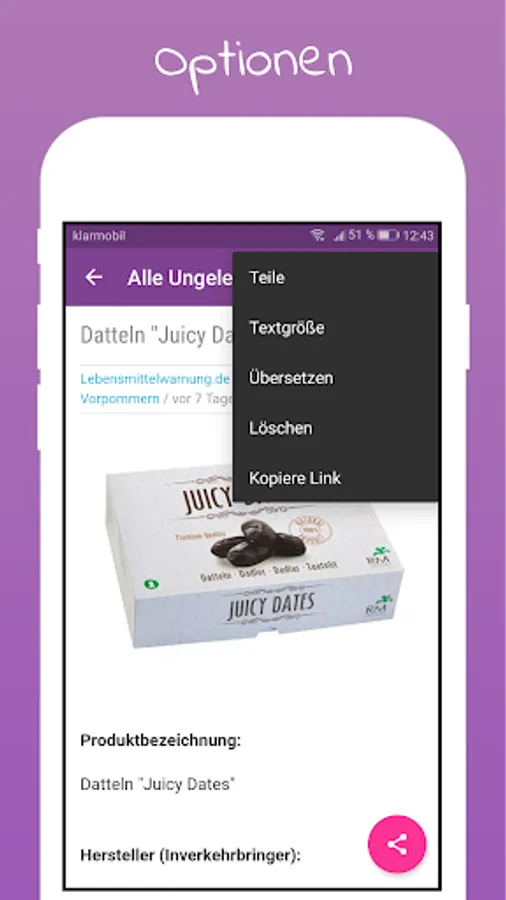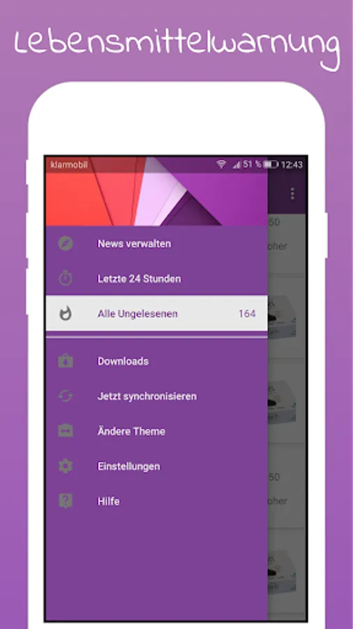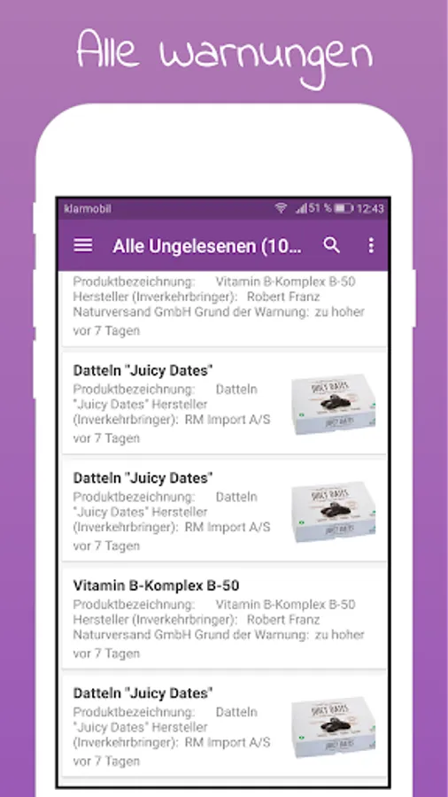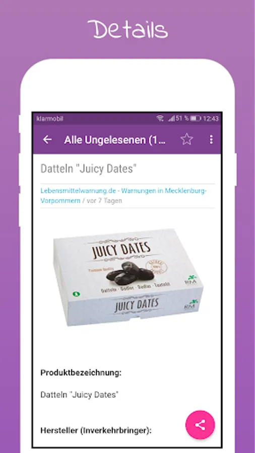 The food warning app displays warnings of food, divided into provinces. Once a new message about food, you are being notified via push message.