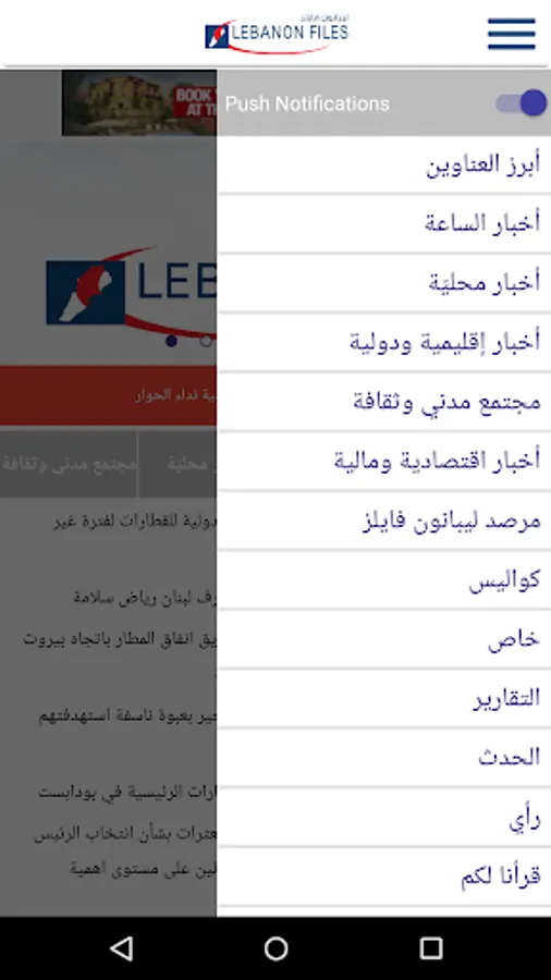 يمكن لمستخدمي هذه الخدمة الجديدة من موقع "ليبانون فايلز" أن يطلعوا على آخر الأخبار ليس بسرعة فقط بل بمصداقيّة كبيرة. ستبقون على اطلاع على الخبر الجديد، أينما حصل حول العالم، وخصوصاً في لبنان. ويمكنكم الاطلاع على مختلف أبواب الموقع، بسهولة تامة، حيث ستجدون حتماً ما يرضي اهتماماتكم. مع خدمة "ليبانون فايلز" عبر "أندرويد" ستنتقلون، بإصبعكم، الى عالمٍ واسع من المواضيع والأخبار المتفرّقة، كما ستكون خدمة push notification متاحة لكم بحيث يصلكم كل جديد وطارئ الى هاتفكم فور حصوله.
