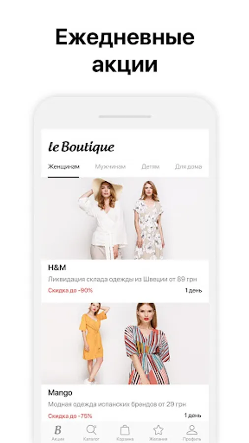 Brand clothes, shoes, cosmetics and accessories at an incredibly low price - now online in your phone! Only for users of the app, LeBoutique clothing store presents new items with 90% discounts.