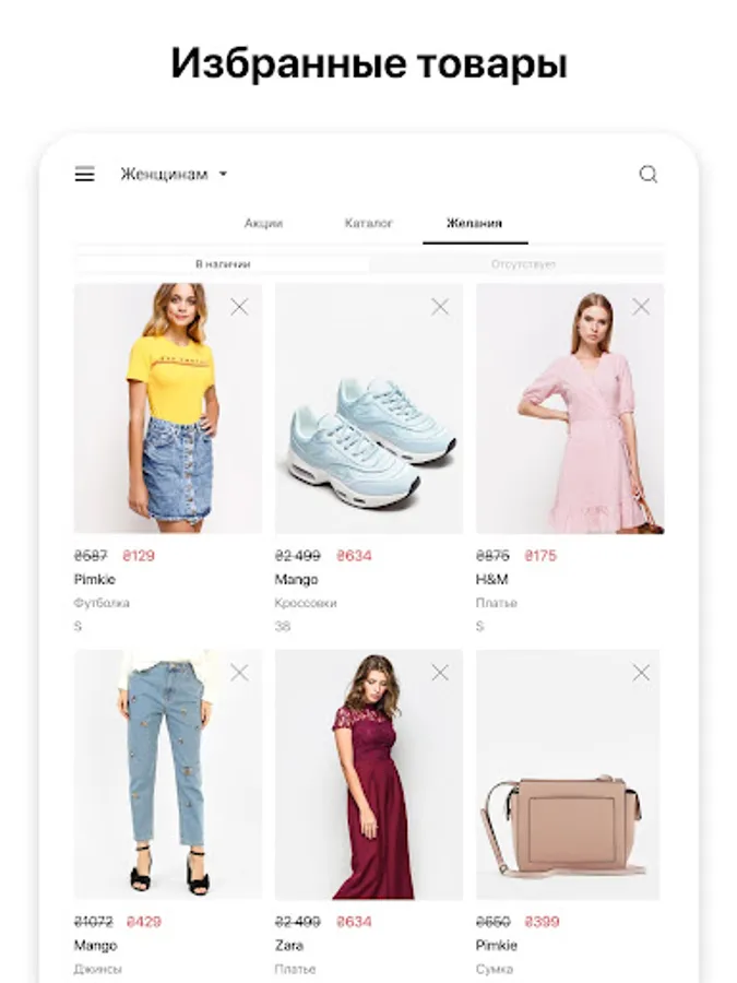 More than a thousand brands of men's and women's clothing, shoes, accessories, underwear and swimwear for children and adults. Become a part of fast and efficient shopping!