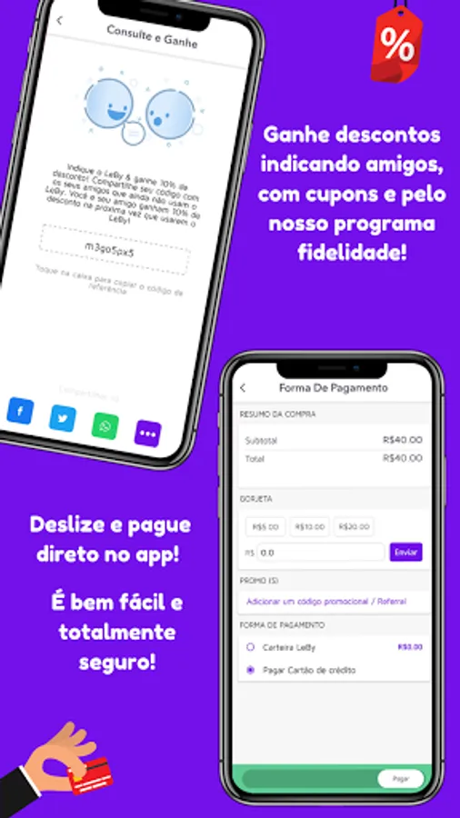 - Descontos através de cupons, indicações de amigos e programa fidelidade;