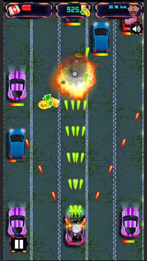 escape from police and drive fast and equipment your cars with shooting with weapons , laser gun and guns machine , exploding cars and trucks while escaping from the police cars