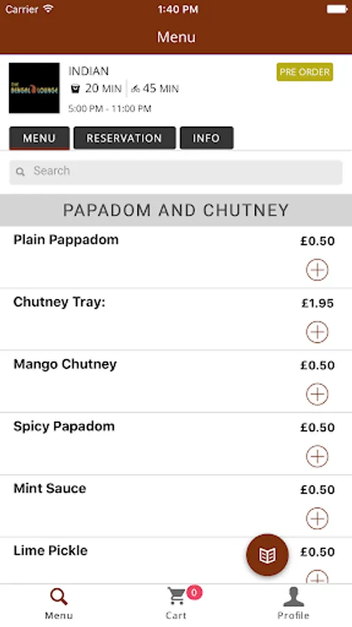 - Easily telephone the restaurant from your mobile