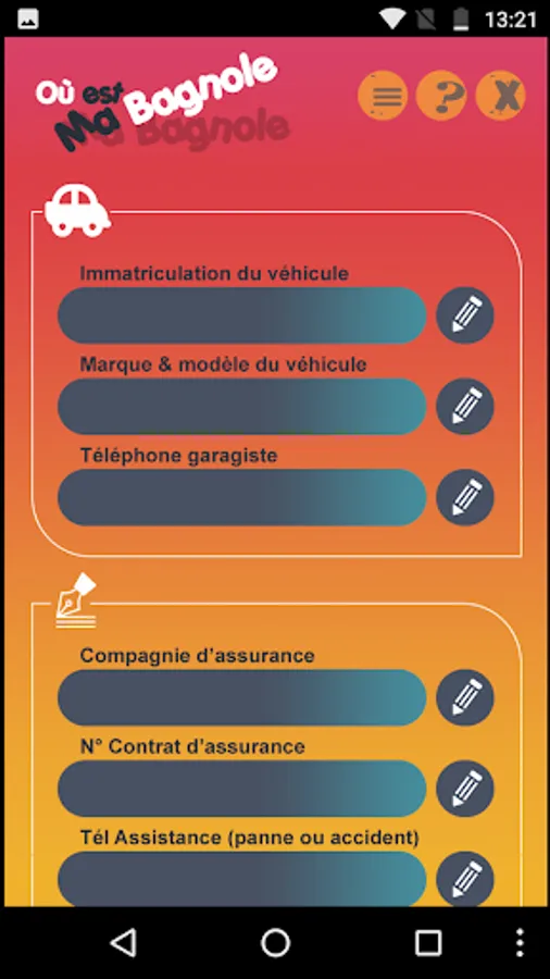It also provides various useful information on its vehicle such as registration (frequently asked parking meters), the phone of your insurance, your mechanic, your assistance in case of breakdown or accident, the date of the next technical inspection or the next oil change, etc.