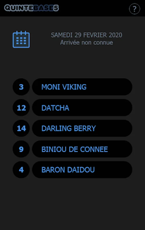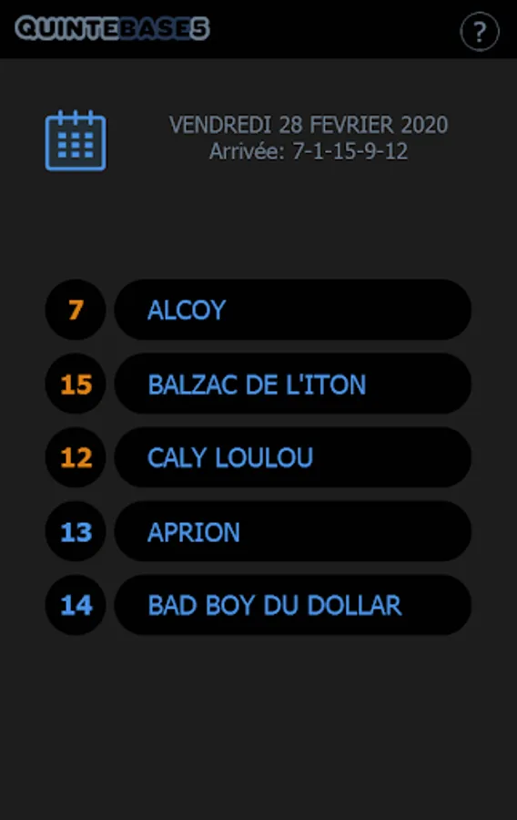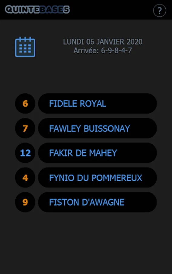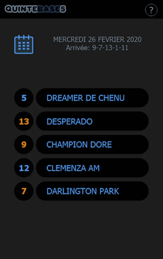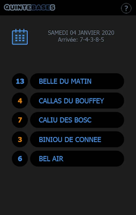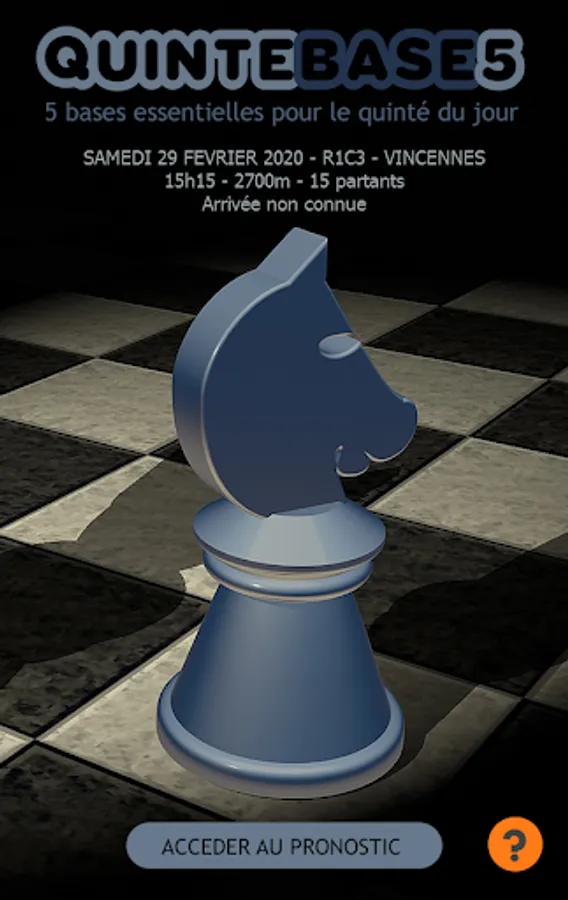 With "QUINTE BASE 5", five theoretical bases of the race are communicated to you every day from 8:00 am, with the number of the horse as well as its name and possibly its origin. These are listed in order of importance.