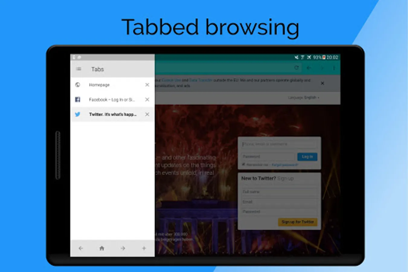 This private browser can be used as public browser for example in combination with a Kiosk Mode App.