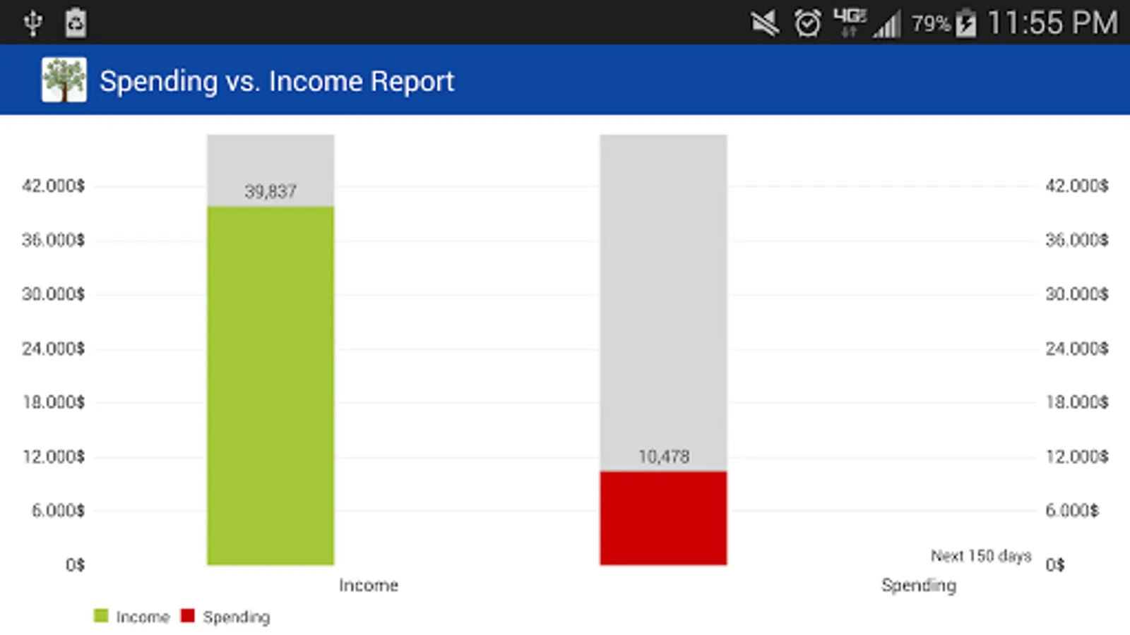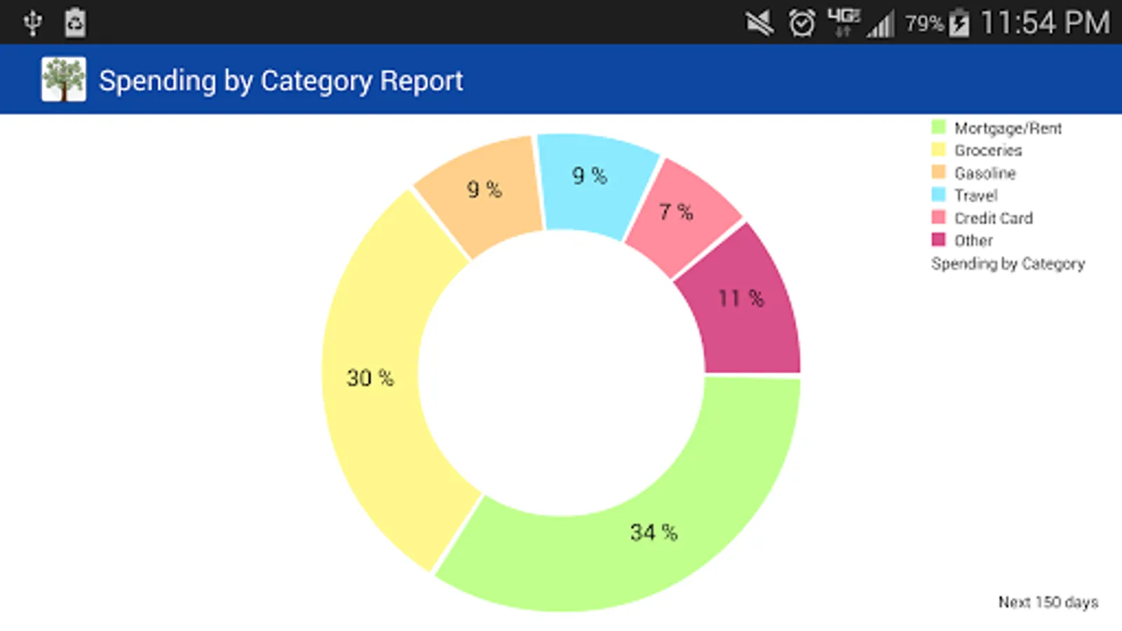 Cash Flow Droid also shows you the forecast amount by categories. Want to know how much you will be spending six months from now in groceries, gas, or electricity? Not a problem, Cash Flow Droid will help you.