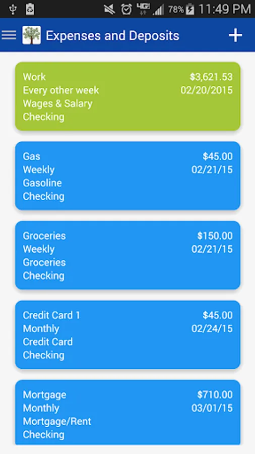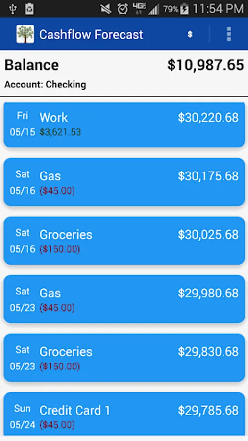 Note: This is not a checkbook. Cash Flow Droid is a financial planning tool that will graphically show you how a particular account balance will change in the future over a given period of time based on bills, deposits, and account balances that you provide.