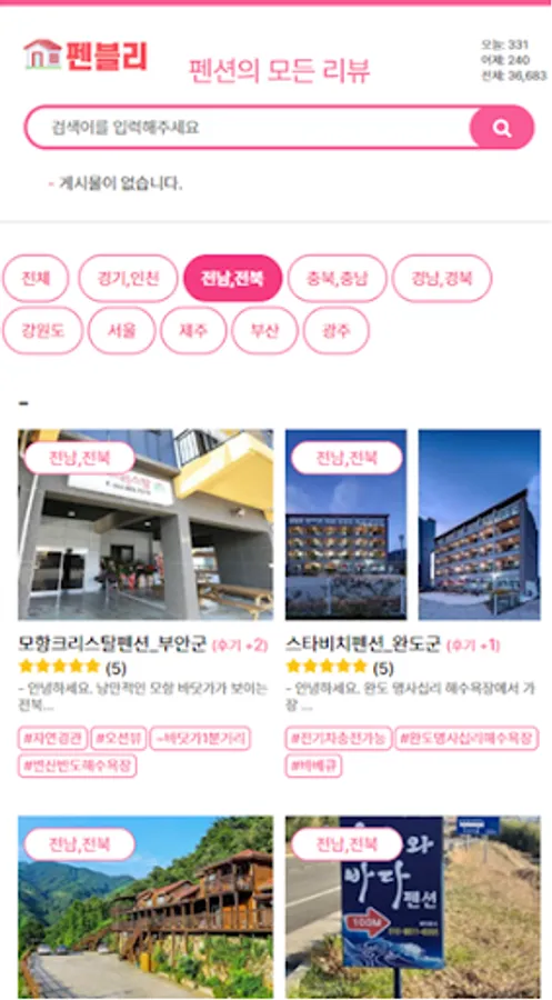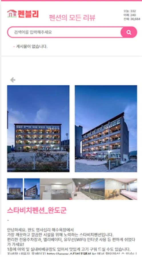 Fenvely is a service that provides various information and user reviews about pensions in Korea.