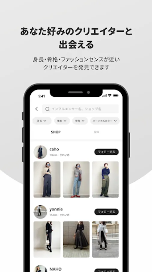□ You can discover creators with similar height, bone structure, and fashion sense