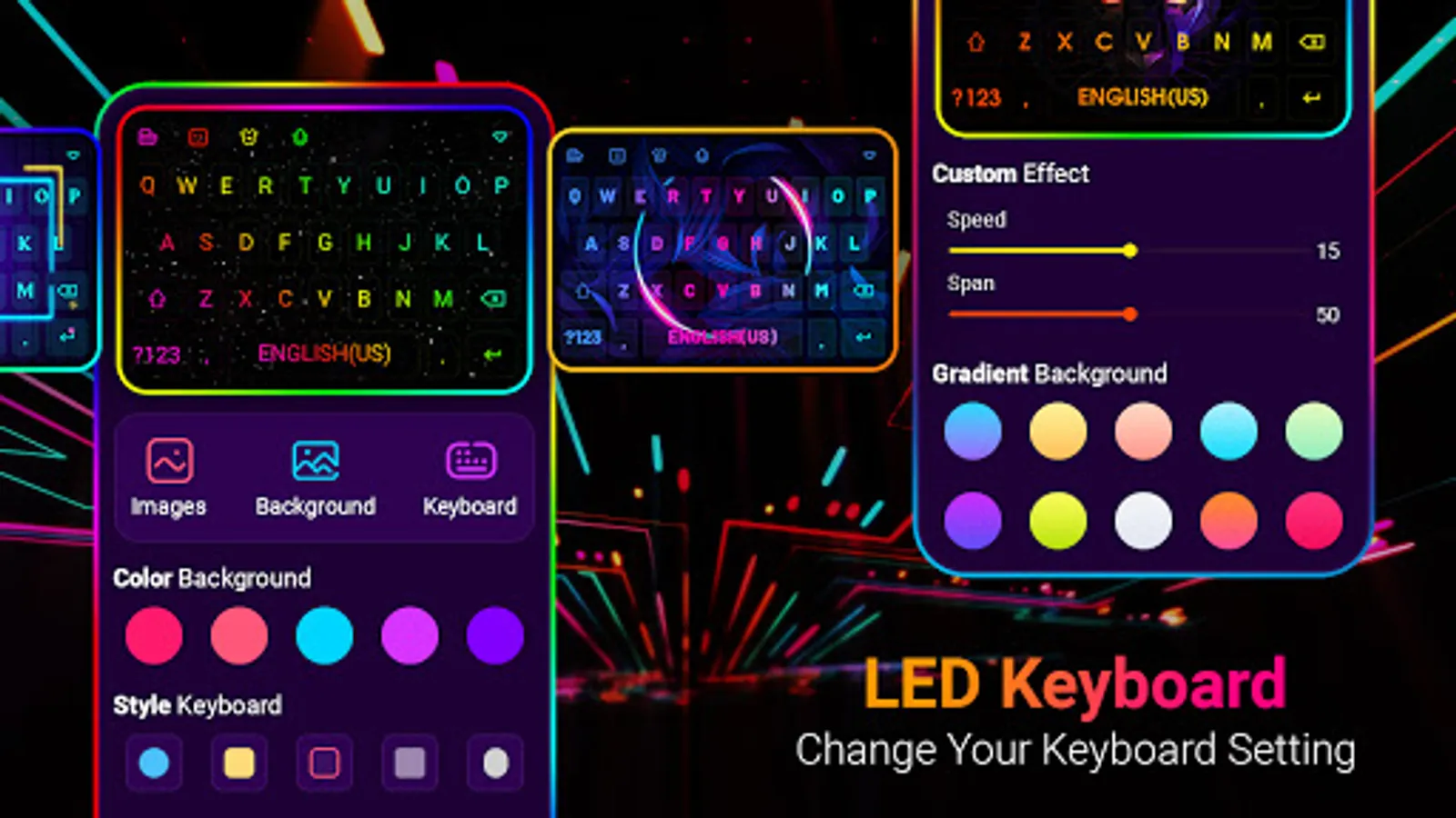RGB Keyboard app 2022 is free LED colour keyboard app with attractive emoticons, stickers, fonts, GIF, and lighting keyboard styles that makes typing experience more enjoyable.