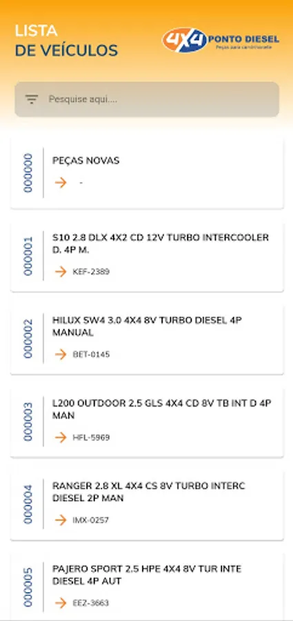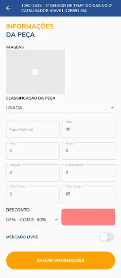 The application has the purpose of inserting vehicle parts, as well as uploading images of them, informing the condition of the parts and etc.