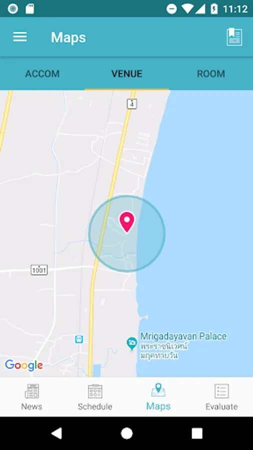• Map: Browse the conference venue and room, and accommodation by map position.